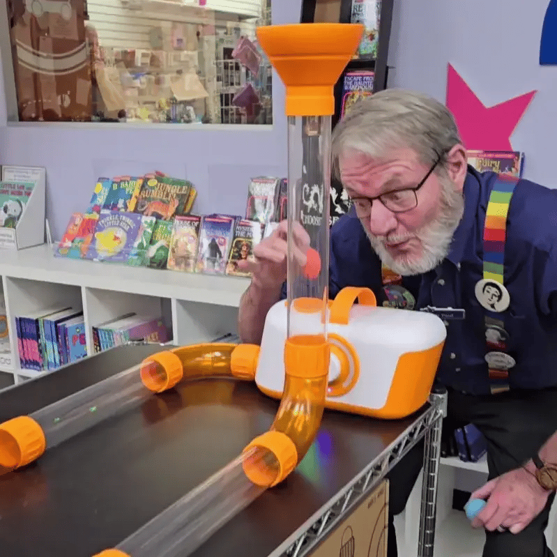 Let the creativity flow with air-powered play! Here are 3 of our top reasons we love Air Toobz: 1. It teaches science - kids explore physics as they connect tubes endless ways (loops, swirls, twists, turns!) and adjust the air flow to launch foam balls through the tubes. 2. AirToobz are eco-friendly - the included battery recharges quickly for hours of play. 3. It is SO FUN - our entire staff wants Air Toobz at home! Includes 20 colorful EVA foam balls, 6 transparent 12-inch tubes, 6 transparent orange corner tubes, 1 T-tube, 1 silicone funnel, 12 easy-fit connectors, 1 fan unit (measures 11.5" x 6.5" x 6"), and charging cable. Plug into a wall outlet to recharge in under 2 hours. Add the Air Toobz Expansion pack for that extra wow factor, sold separately.