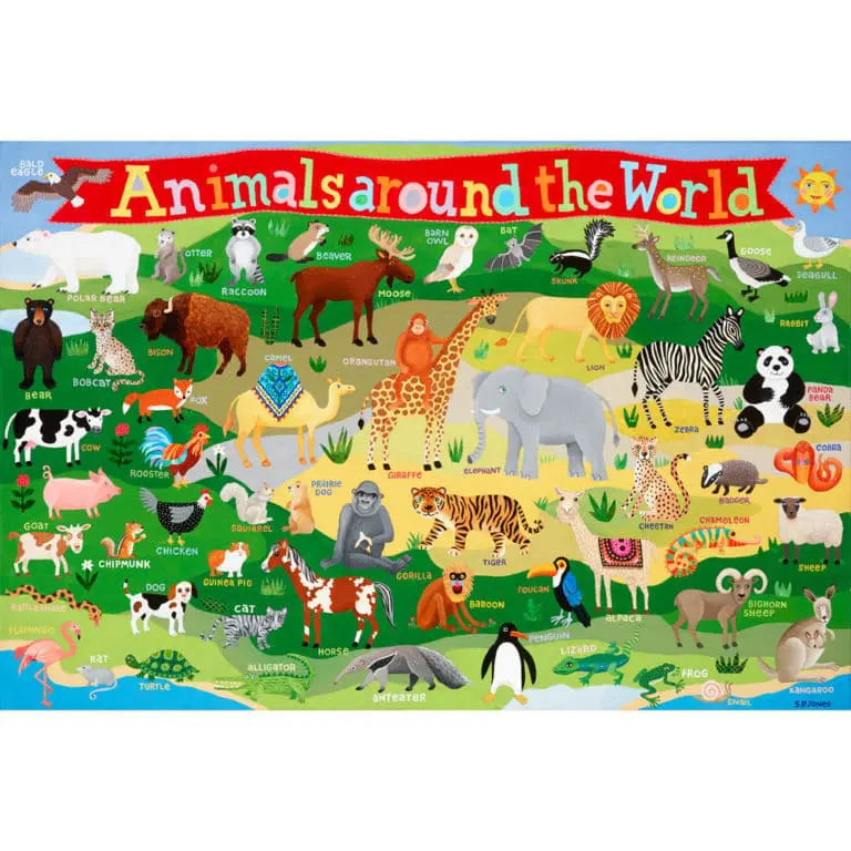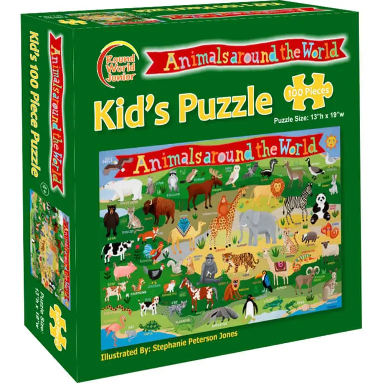 Embark on a global safari with the "Animals of the World" 100-piece jigsaw puzzle! Perfect for animal lovers and young naturalists, this puzzle presents a vivid and joyous illustration of the animal kingdom spread across the continents. From the majestic African elephant to the adorable panda bear of Asia, from the towering moose of North America to the regal lion, this puzzle is a bustling menagerie of creatures, both wild and domestic.
