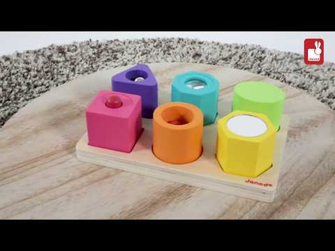 A fantastic puzzle for toddlers to teach them how to recognize shapes and help them develop their fine motor skills while having fun. Each cube has a different shape, colour and function: bell, kaleidoscope, sound effects, horn, rattle and mirror. This sensory puzzle will stimulate all your child's senses. Basis in plywood, blocks in beech wood. FSC certified. Waterpainting. Closed color box.