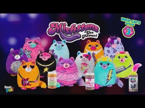 The Misfittens are back with a wild new twist in Series 3! Meet the all-new Wild Cats, fluffy, funky, and full of surprises! These rockin' kitties come in vibrant new colors and styles, complete with extra fluffy, two-toned tails. Each plush Misfitten is playfully squished into a quirky, misfitting container. Just give their tail a pull to set them MEOWT and watch as they puff up to twice their size! Will your kitty come with a cool guitar or some funky glasses? With 12 adorable cats to collect and 8 unique containers, every unboxing is a fun and unexpected surprise. A purrfectly original gift for any cat lover! Styles and selection may vary. Each sold separately