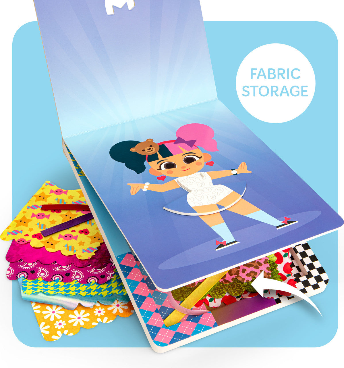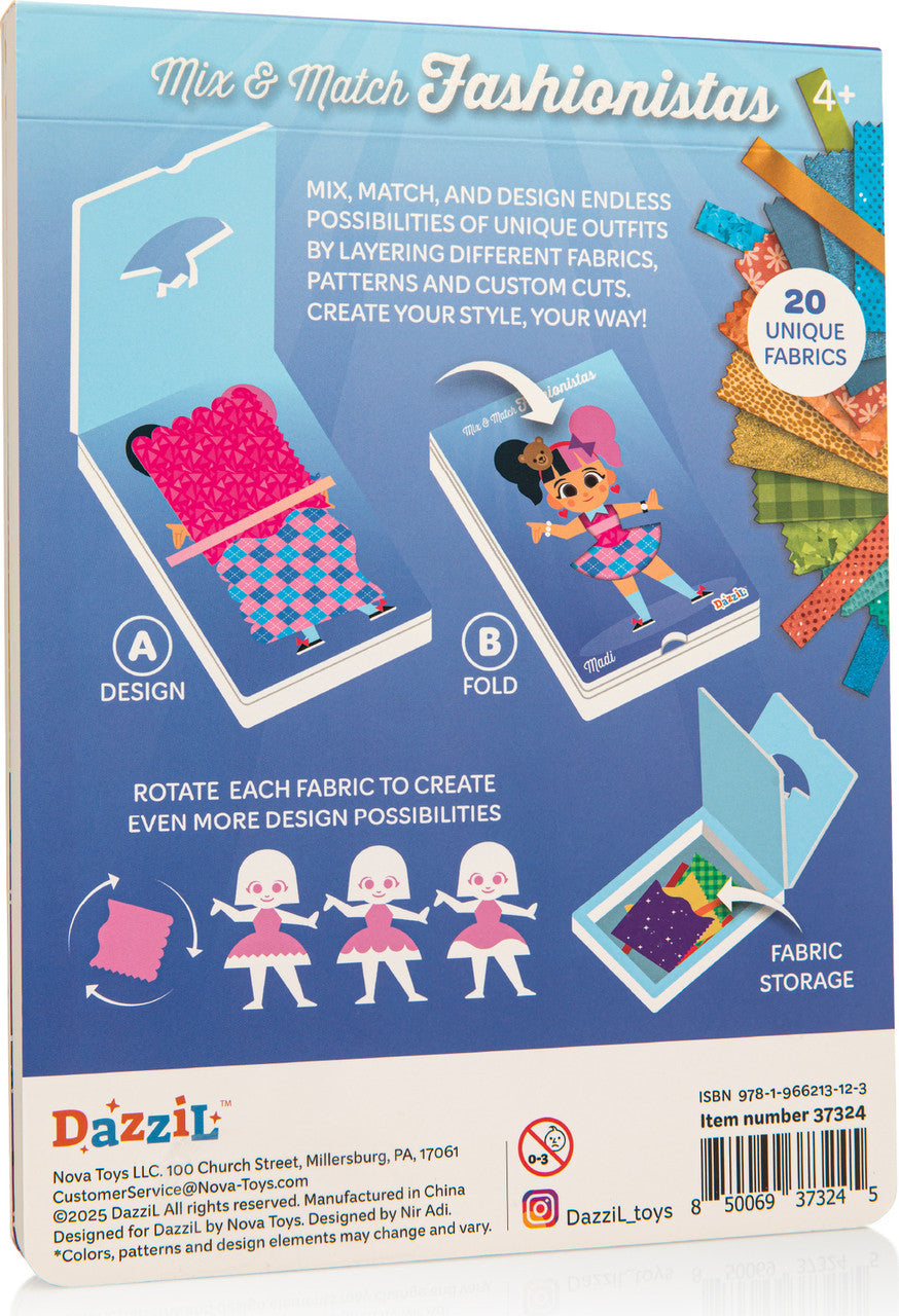 Become a fashion designer with Mix & Match Fashionistas Madi! Layer colorful fabric pieces inside the frame to create endless outfit combinations—no sewing, glue, or scissors required. Mix patterns, colors, and styles to express your unique fashion vision and discover your personal aesthetic. This interactive activity sparks creativity while building confidence in your design choices. Why follow trends when you can create them? Perfect for aspiring stylists who love experimenting with looks, Madi lets you explore fashion fearlessly and celebrate your one-of-a-kind sense of style!
