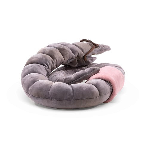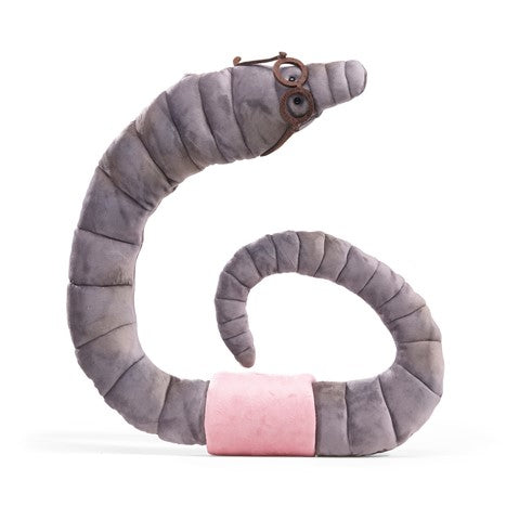 Delight young audiences with the Folkmanis Puppet Bookworm! This super long, slinky worm is made from soft gray and pink velboa fabric, complete with charming eyeglasses that add personality. Its easily movable mouth makes storytelling lively and captivating, perfect for avid readers, teachers, and librarians looking to bring stories to life with playful fun and creativity.