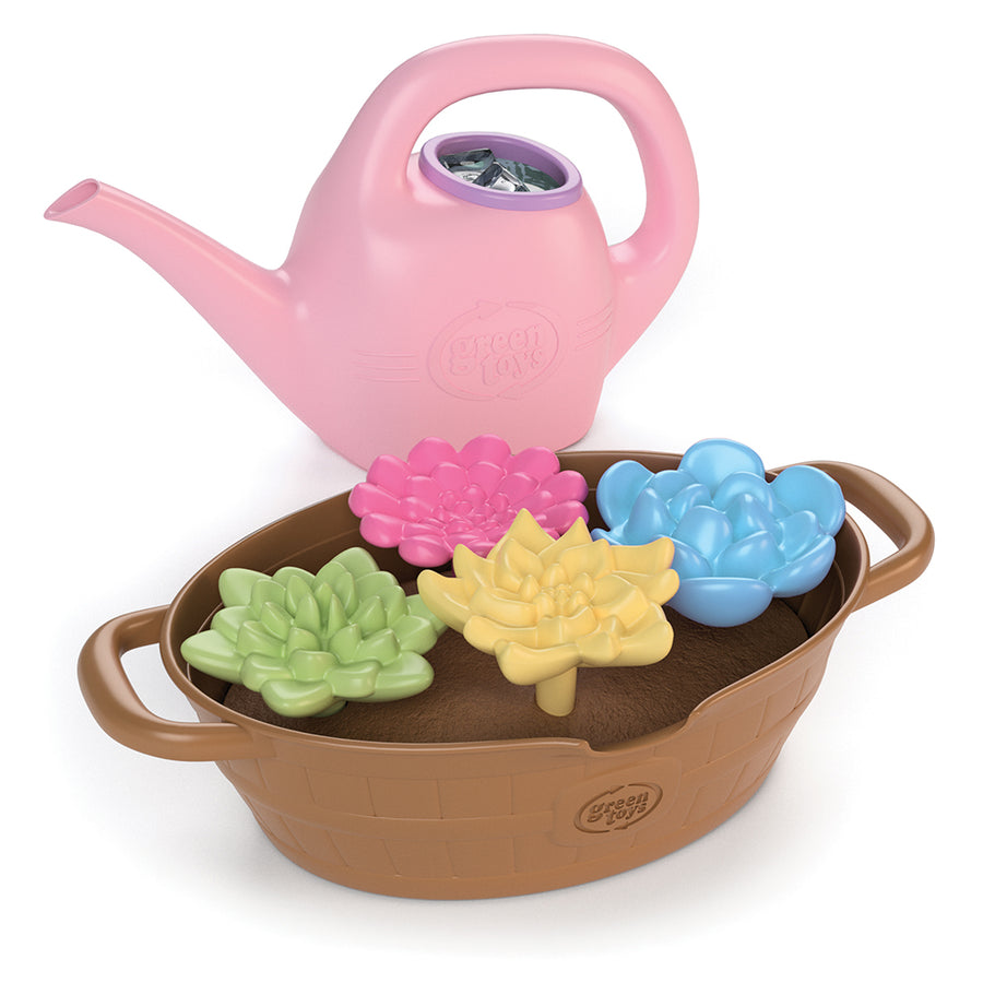 The Green Toys Rainbow Bloom Color Changing Water Activity Set sparks creativity and curiosity in little hands! With a pink watering can, planter, and four toy succulents that change color when touched by cold water, it’s a magical way for kids to explore gardening and early science. This sustainable, 100% recycled plastic set is free from BPA, phthalates, and PVC, making it safe and easy to clean. Perfect for imaginative play, it encourages empathy and a love of nature while boosting color recognition and scientific thinking.