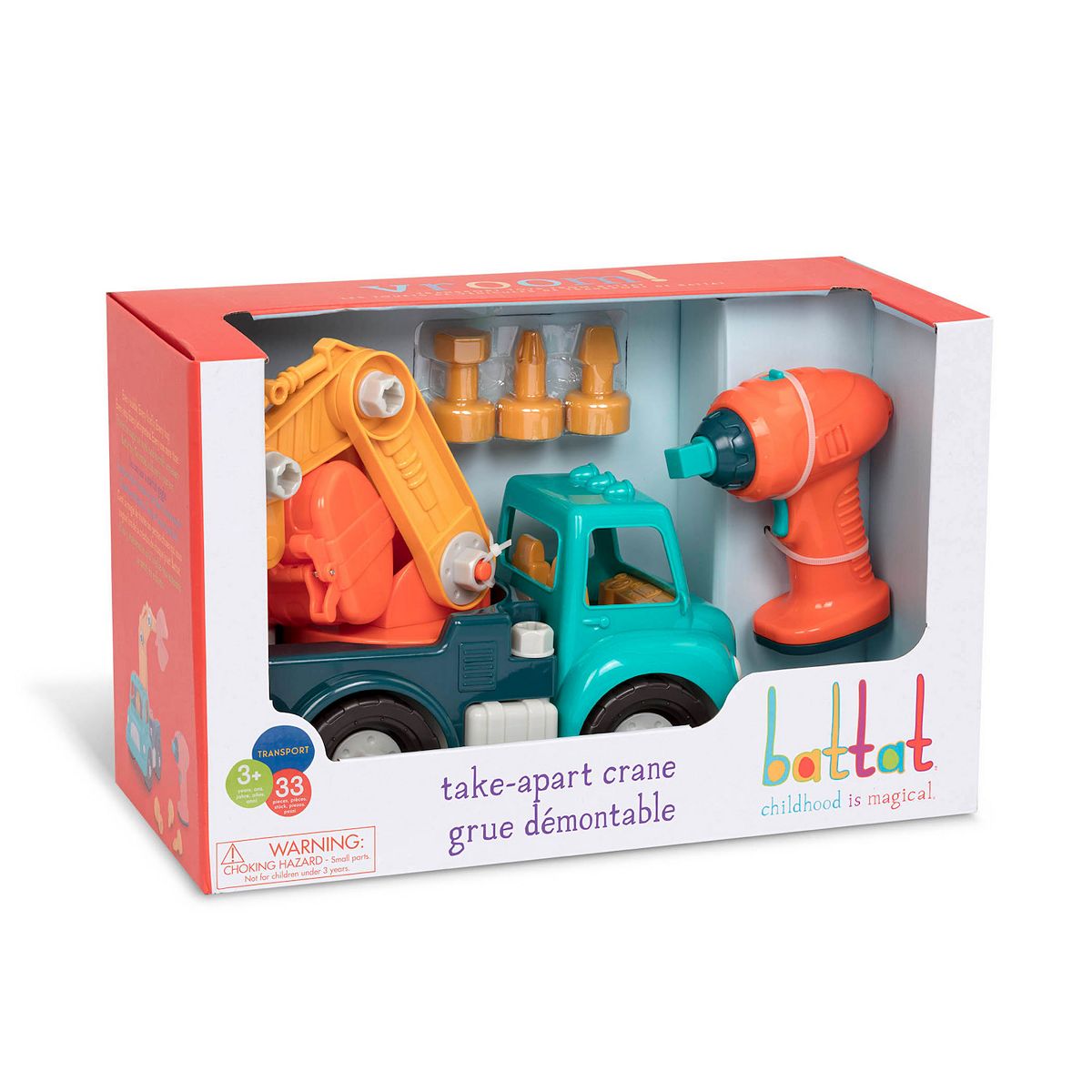 Kids love tools! Empower your future technician to build and discover as they construct this working, moving toy crane. Using the working (but totally safe!) power drill that turns left and right just like the real thing, itty bitty hands assemble the 30 chunky pieces. Their sense of accomplishment can be reconstructed by taking the crane apart and building again and again! Includes 30 crane components, 1 hand drill, and 3 drill adaptors. Completed crane measures 16" x 6" x 10". Requires 2 AA batteries, not included.