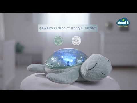 Soothe baby and reassure children who are afraid of the dark with an eco-friendly plush turtle that doubles as a nightlight and sound machine. Tranquil Turtle's aqua shell projects a motion waves light effect, comforting dreamers as they drift off to sleep. Choose from 4 soothing sounds: underwater melody, tranquil melody, whale song, or ocean waves. The 23-minute timer ensures complete darkness and silence while children sleep soundly. An intelligent Cry Sensor, with adjustable sensitivity, restarts the Turtle at baby's first cry. All light and sound levels are adjustable. We love that it's rechargeable, made from recycled plastic bottles, and uses FSC certified packaging. Requires USB-C rechargeable battery cord, not included.